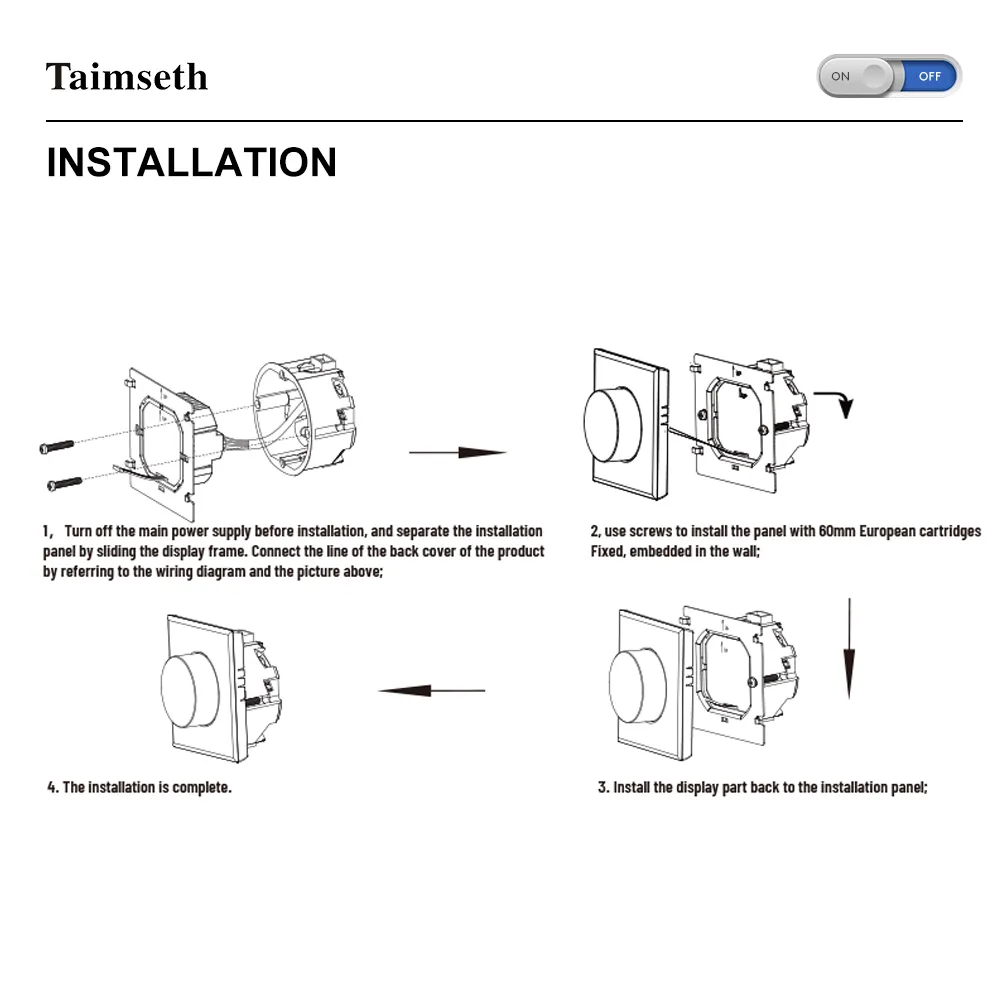 • Installation Box: 86*86mm Sauare or European 60mm Round Box